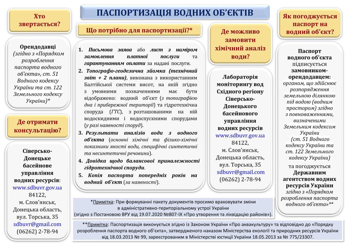 При формуванні пакету документів для паспортизації водного об’єкта просимо враховувати зміни в адміністративно-територіальному устрої України (згідно з постановою Верховної Ради України від 19.07.2020 №807-ІХ "Про утворення та ліквідацію районів").