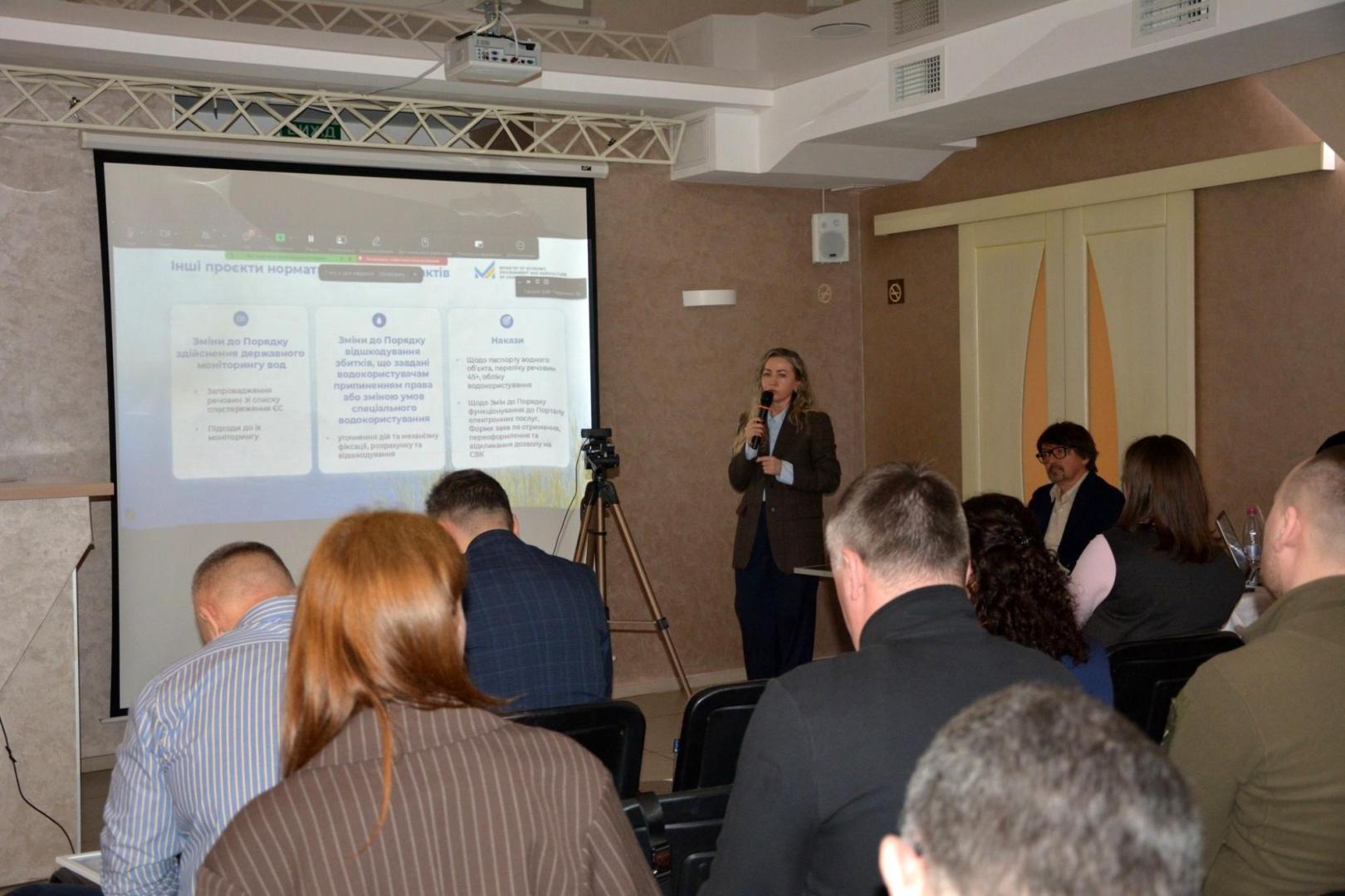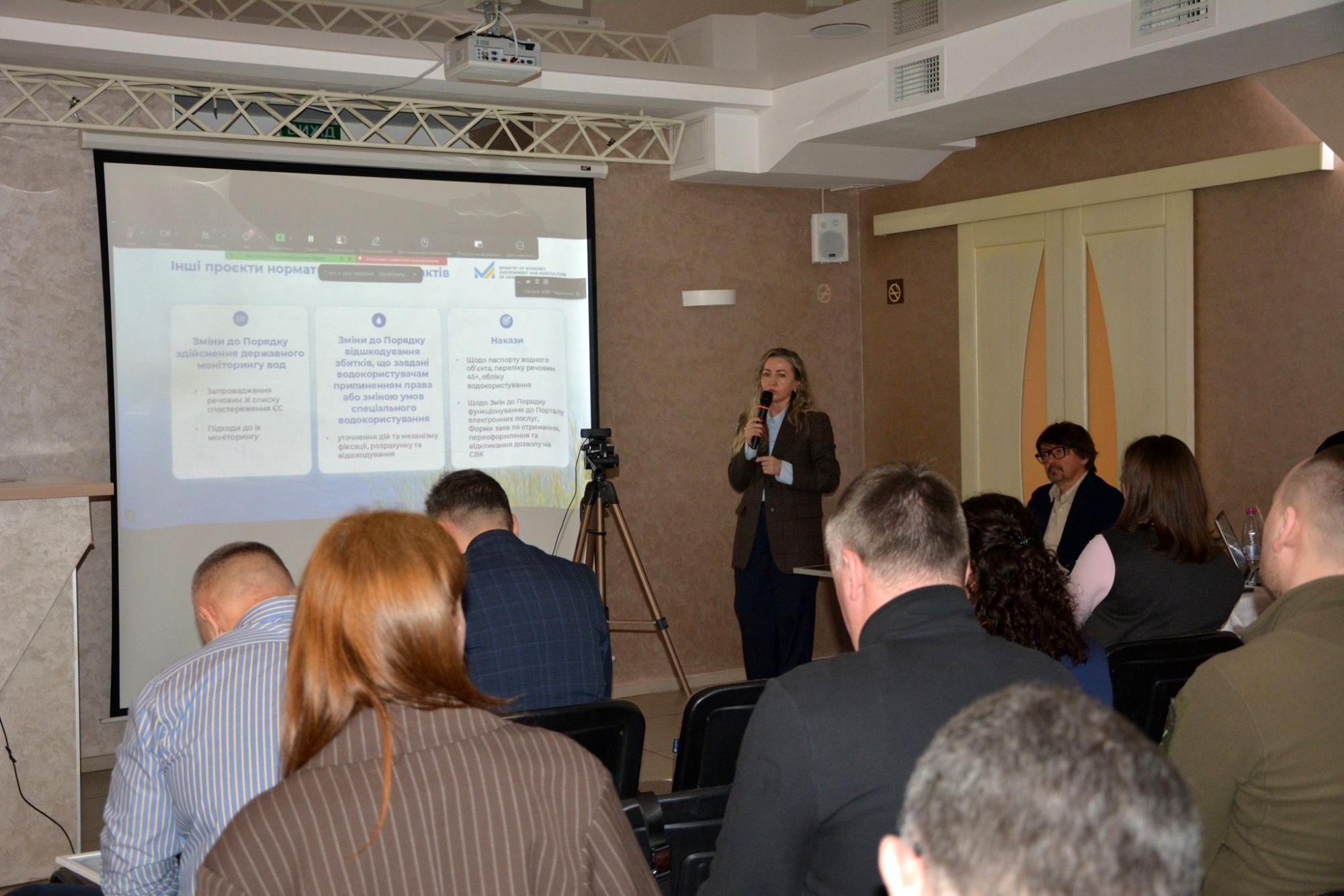 Законодавчі ініціативи Міністерства економіки, довкілля та сільського господарства України щодо збереження водності річок висвітлила, заступник начальника управління регулювання рибного господарства, меліорації, водних ресурсів та морських екосистем – начальник відділу охорони та відтворення водних ресурсів та морських екосистем Мінекономіки Марія Шпанчик.