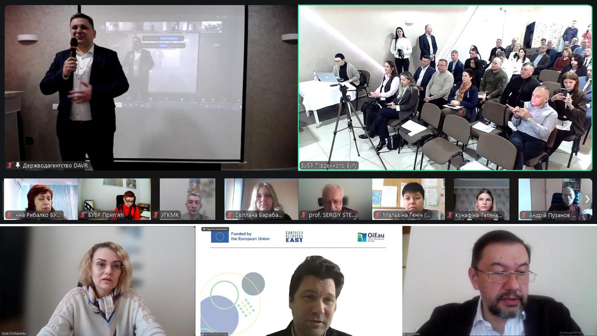 Заходи ПУРБ щодо зменшення впливу гідроморфологічних змін висвітлили керівник відділу інновацій КП «Інститут розвитку міст» Катерина Пісоцька, яка презентувала наукові дослідження та практичні дії з відновлення річок Дьогтянець та Тяжилів у Вінниці. Та заступник начальника управління з питань екології та контролю за благоустроєм Хмельницької міської ради Владислав Пукас, присвятивши виступ викликам та шляхам вирішення проблем річки Плоска.