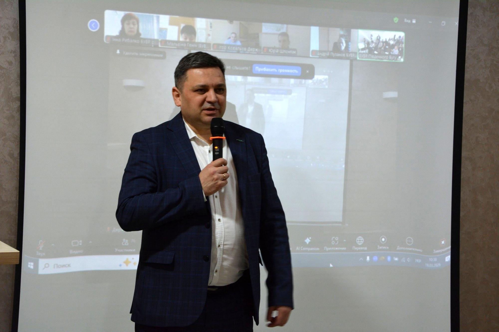 Про досягнутий прогрес та подальші кроки реалізації ПУРБ Південного Бугу з учасниками заходу поділився начальник Басейнового управління водних ресурсів річки Південний Буг Ілля Дяконович.