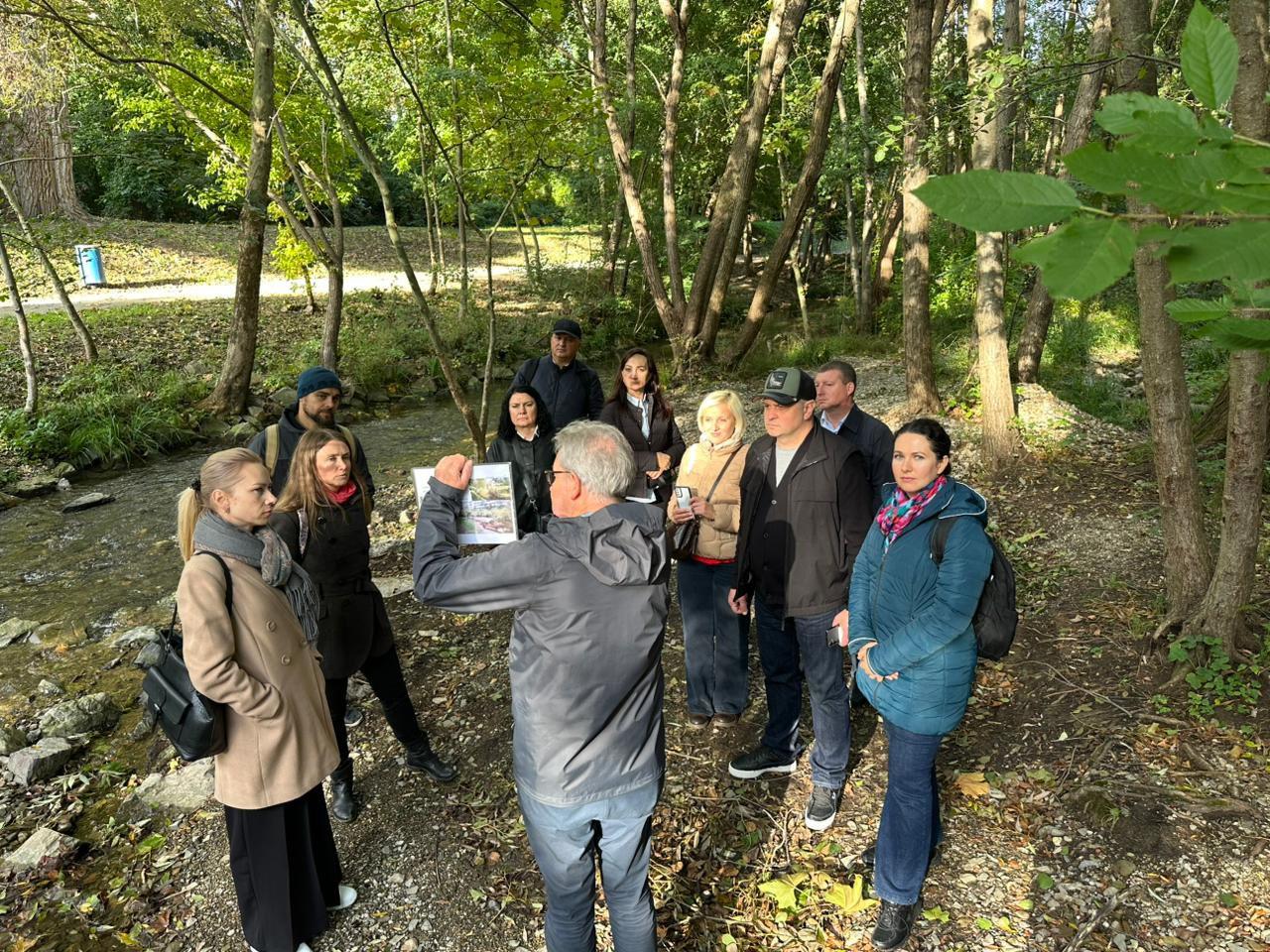 Особливо цінним стали знання про досвід реалізації природоорієнтованих рішень на прикладі відвідування річки Лізинг, де було продемонстровано результати відновлення ділянки річки до умов, близьких до природних, наслідків пропуску паводка у вересні 2024 року та загальної користі таких заходів для біорізноманіття, місцевого населення та довкілля в цілому.