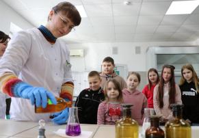 А потім фахівці лабораторії моніторингу вод Східного регіону демонстрували захопленим дітлахам видовищні дива, на які здатна вода у поєднанні з різними реактивами, а також дозволили самостійно провести дослідження – визначити pH розчину за допомогою індикаторного паперу. І звісно – сфотографуватися на пам’ять про відвідування однієї з чотирьох регіональних лабораторій Держводагентства.