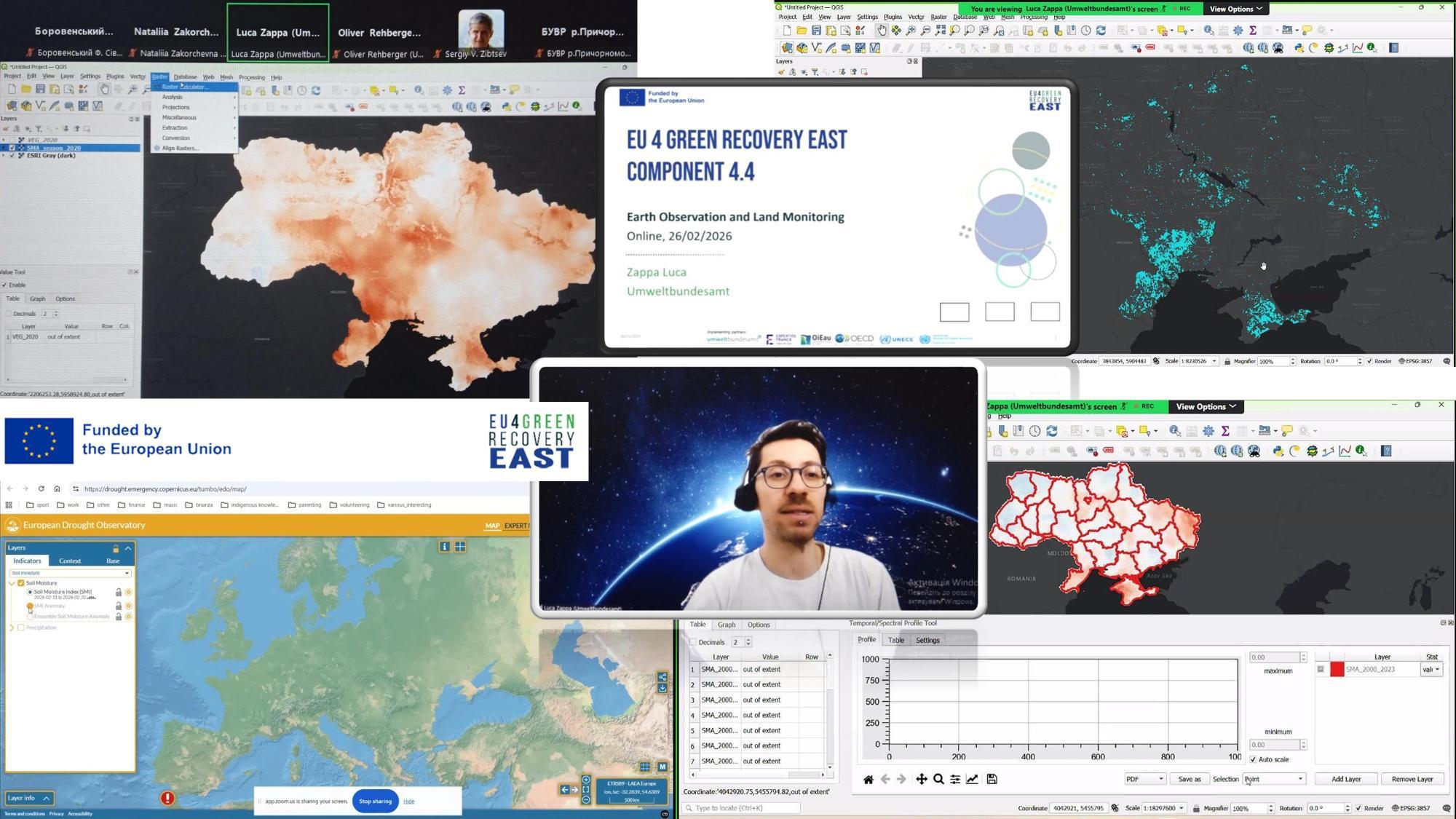 25-26 лютого фахівці Сіверсько-Донецького басейнового управління водних ресурсів узяли участь в онлайн-воркшопі «Спостереження за Землею та моніторинг земель» щодо впровадження інструментів дистанційного зондування Землі для моніторингу довкілля. Захід відбувся у межах програми EU4Green Recovery East, що фінансується Європейським Союзом.