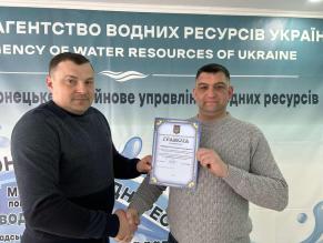 Подяки Держводагентства було вручено Ірині Гетьман, провідному фахівцю із стандартизації, сертифікації та якості лабораторії моніторингу вод Східного регіону, та Сергію Шульзі, електромонтеру з ремонту та обслуговування електроустаткування Лиманської експлуатаційної дільниці з ремонту та обслуговування ГТС Сіверсько-Донецького БУВР.