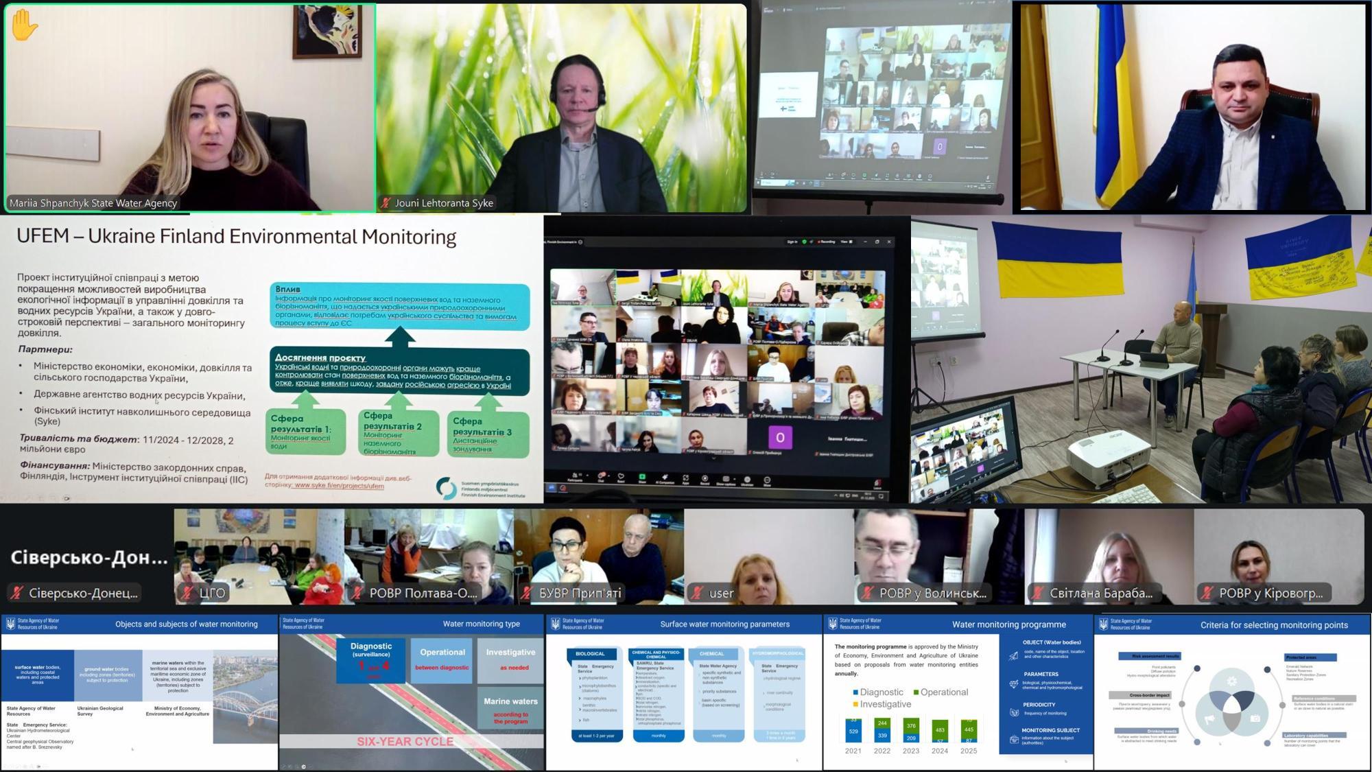 Наголошуючи на важливості моніторингу поверхневих вод для суспільства як за мирних часів, так і в період воєнних дій, наукові співробітники Фінського інституту навколишнього середовища (Syke) Йоуні Леторанта, Ярно Турунен, Юкка Аровіта, Сарі Міттікка та Катрі Сіімес розповіли про значення водозбірного басейну, гідрології та морфометрії для якості води; класифікацію та вибір водних об'єктів, що підлягають моніторингу, на основі Водної Рамкової Директиви (ВРД); вимоги Європейського Союзу до моніторингу згідно з ВРД; досвід Фінляндії у моніторингу пріоритетних речовин згідно з ВРД; механізми впровадження планів управління річковими басейнами, програми моніторингу, роль органів влади та залучення зацікавлених сторін.
