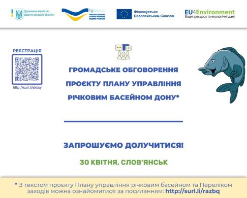 30 квітня 2024 року відбудеться захід з публічного обговорення проєкту Плану управління річковим басейном Дону (суббасейни Сіверського Дінця та Нижнього Дону).