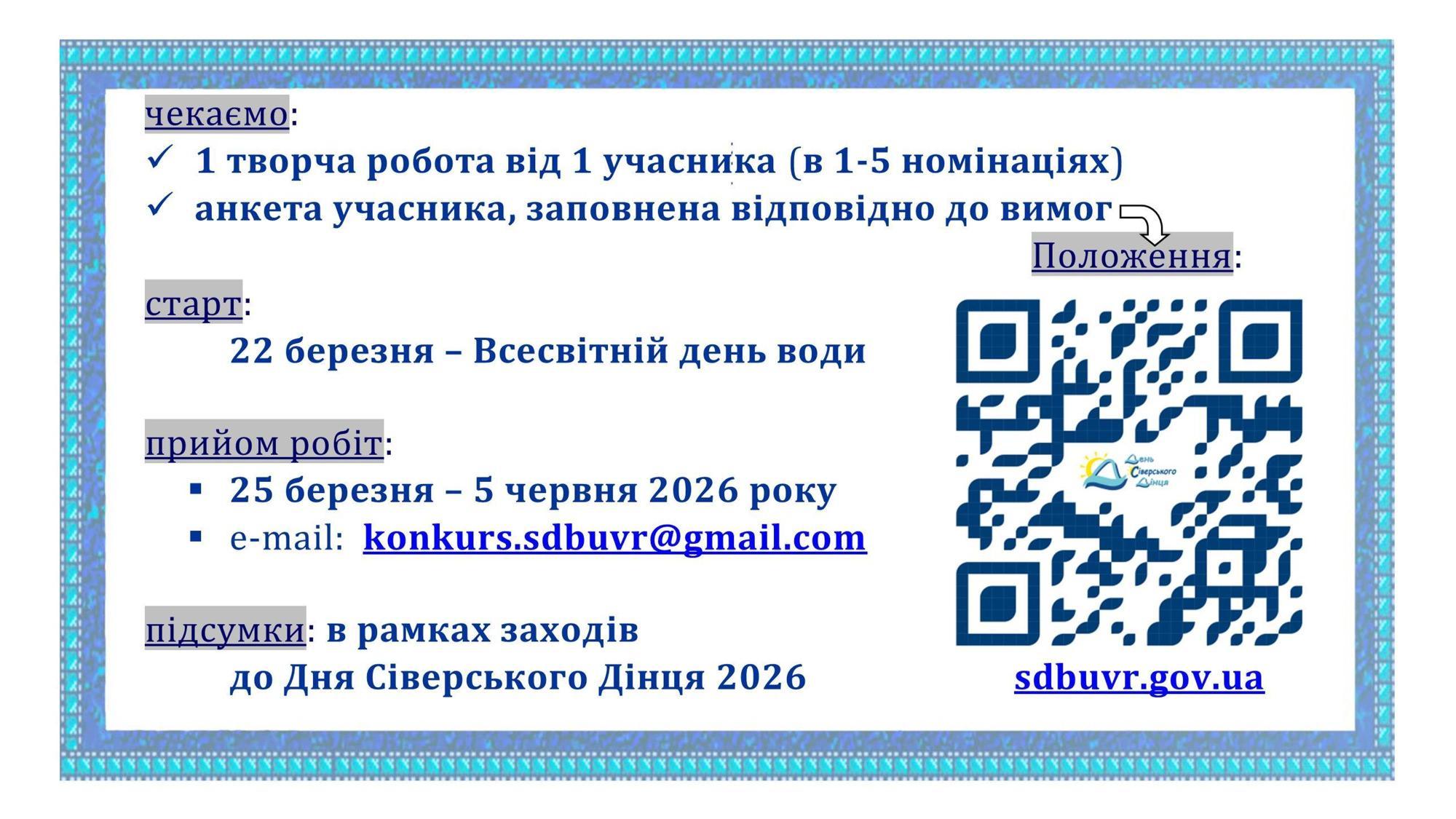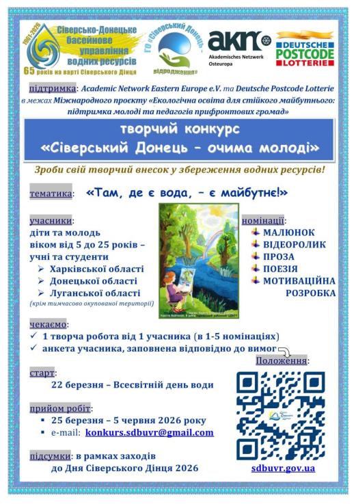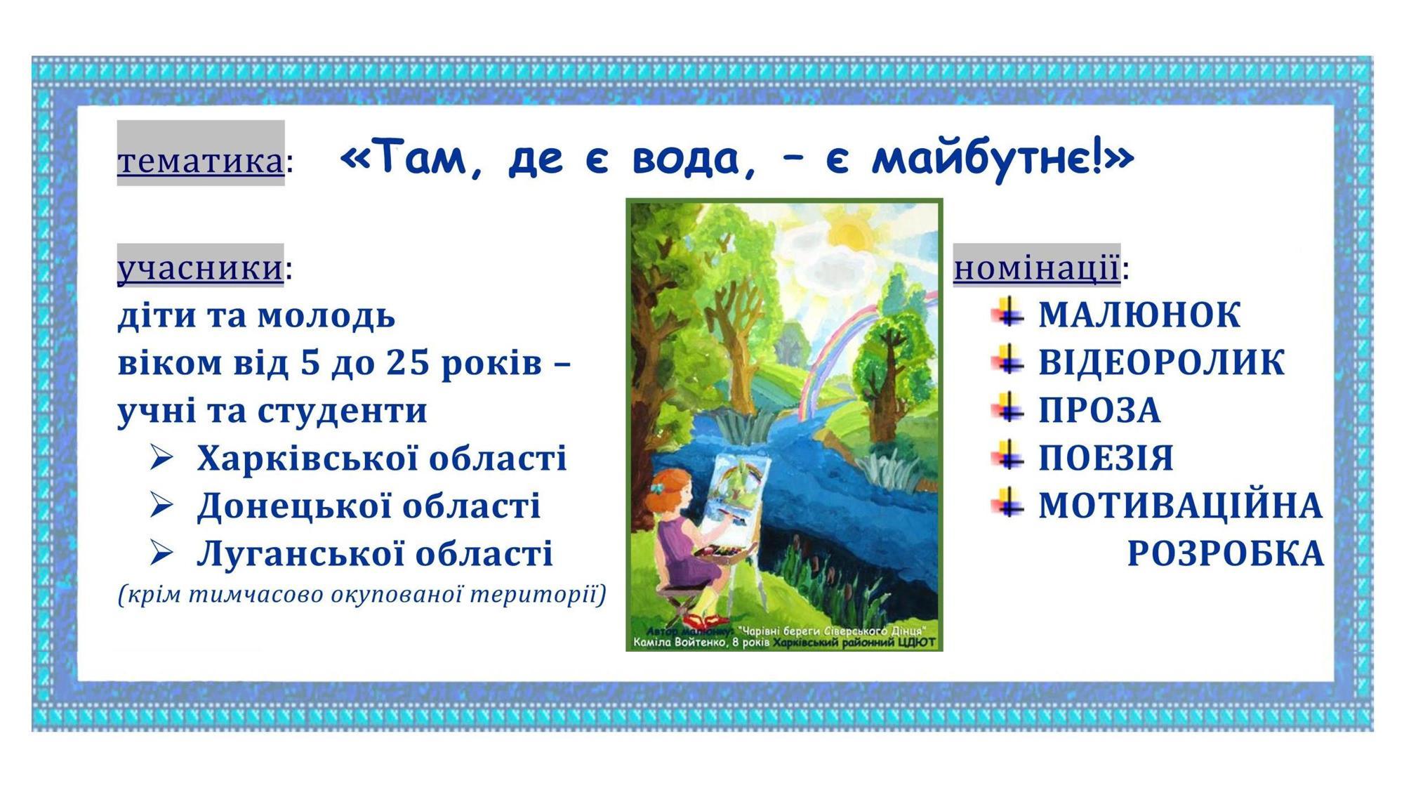 Бери участь в дитячо-юнацькому конкурсі «Сіверський Донець – очима молоді» 2026 під гаслом: «Там, де є вода, – є майбутнє!»