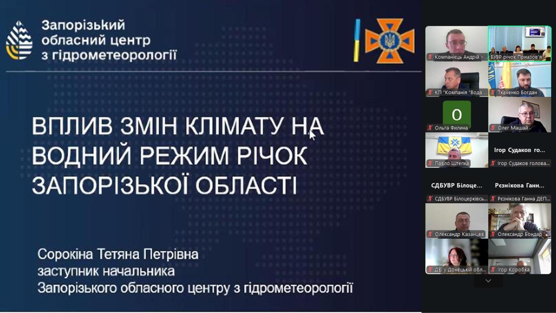 Дані про вплив змін клімату на водність річок Приазов’я презентували директор Департаменту захисту довкілля Запорізької облдержадміністрації Олександр Казанцев та заступник начальника Запорізького обласного центру з гідрометеорології Тетяна Сорокіна.