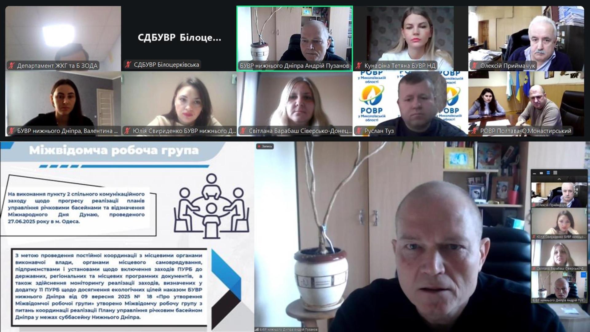 27 листопада фахівці Сіверсько-Донецького басейнового управління водних ресурсів узяли участь в онлайн-засіданні Міжвідомчої робочої групи з питань координації реалізації Плану управління річковим басейном Дніпра у межах суббасейну Нижнього Дніпра.