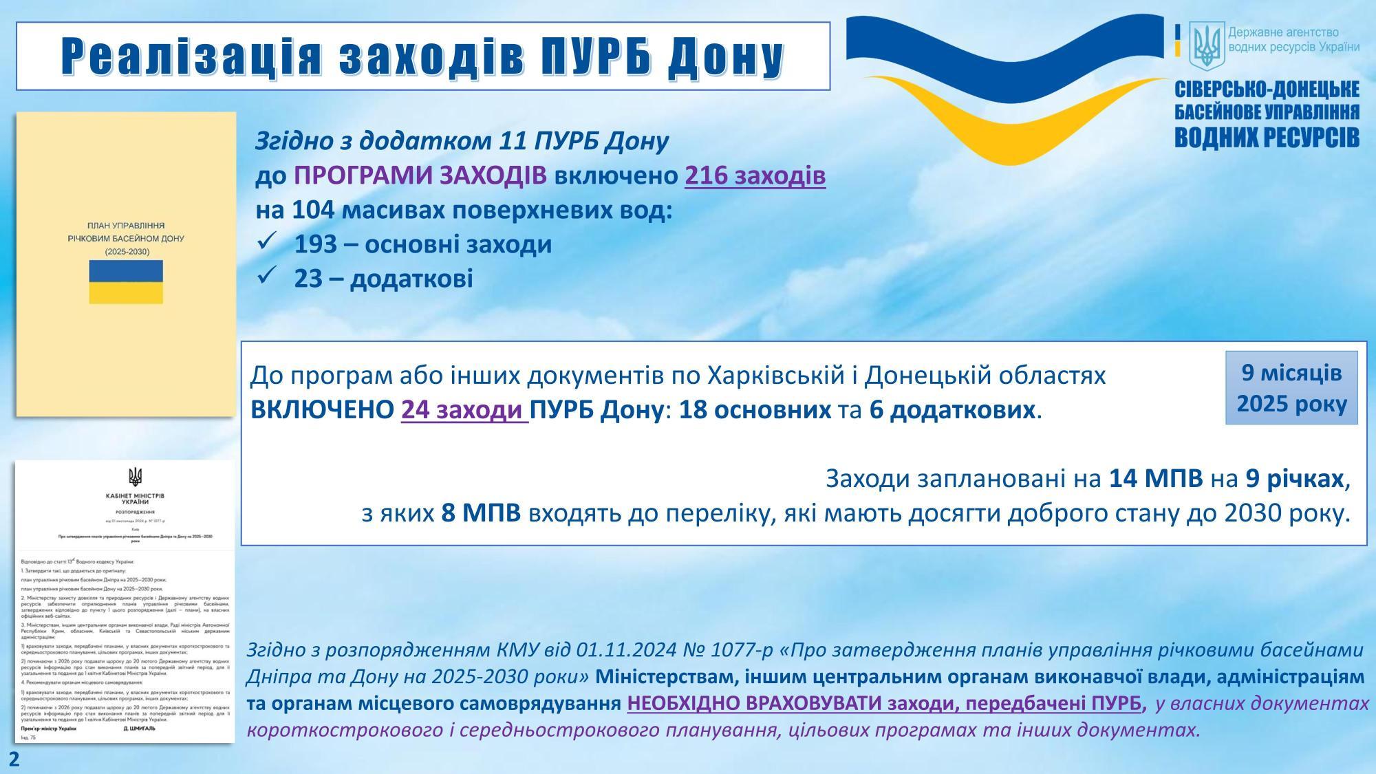 Наразі територія району басейну річки Дон (суббасейни Сіверського Дінця та Нижнього Дону) в межах Харківської, Донецької та Луганської областей здебільшого знаходиться в зоні ведення активних бойових дій або тимчасово окупована, у зв’язку з чим ускладнюється реалізація заходів ПУРБ Дону.