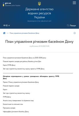 У період з 21 грудня 2023 року по 21 червня 2024 року тривав процес громадського обговорення проєктів ПУРБ всіх річкових басейнів України, в тому числі й по району басейну річки Дон.
